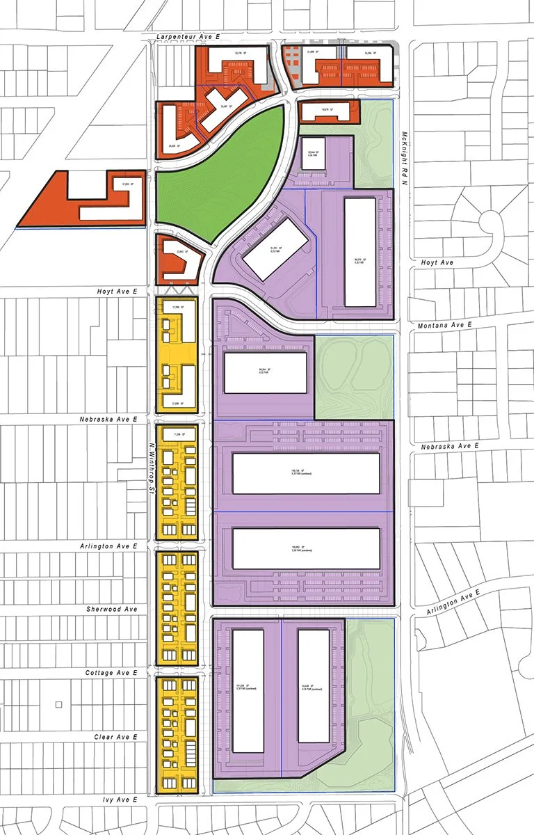 Sherman will partner with JO Companies and Twin Cities Habitat to develop a range of housing options. Sherman will develop approximately 700 multifamily units, with JO Companies spearheading a smaller multifamily building with 110 to 230 units. In addition, Twin Cities Habitat will provide 130 to 150 affordable home ownership opportunities, including twin, triplex, fourplex, and single-family homes.
